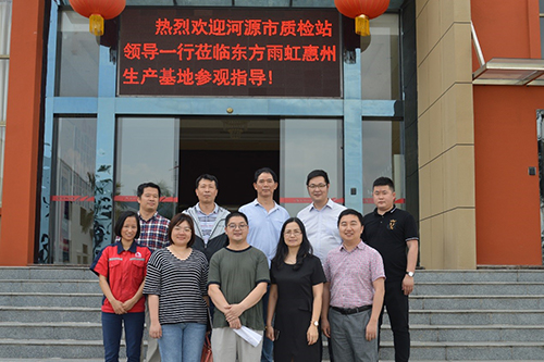 4月25日,廣東省河源市建設(shè)工程質(zhì)量安全檢測站總工程師劉開紅、檢測室副主任黃寧寧一行考察東方雨虹惠州生產(chǎn)基地。