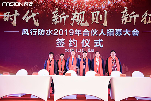 會上,風行防水與10家合伙人達成合作共識,進行了現場簽約。