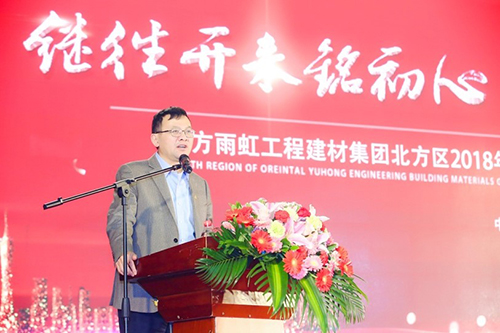 會上,東方雨虹工建集團北方區董事長張洪濤首先做工作報告。以“穩健經營強創新,凝心聚力謀發展”為主題,總結2018年經營成果,部署2019年工作重點。