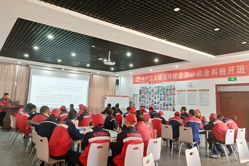11月18日,東方雨虹制造中心生產工人培訓學校北京分校涂料班開班,北京生產基地全體員工參加開班儀式,副廠長于杰擔任校長并致辭。