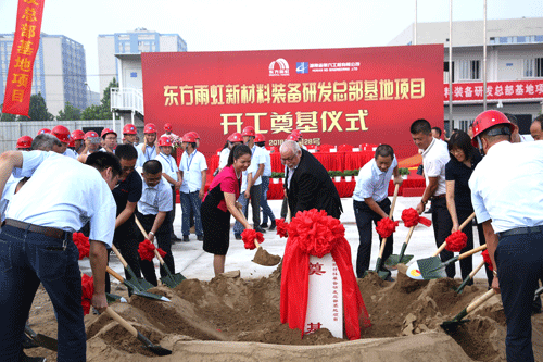 湖南省第六工程有限公司華北公司總經理袁鷹、原巴斯夫高級副總裁現東方雨虹特聘專家 Joachim Roser博士、東方雨虹新材料研發總部基地項目負責人楊小波、湖南省第六工程有限公司華北公司東方雨虹新材料研發總部基地項目負責人劉華平、中國建筑設計研究院有限公司設計主持人時紅等共同出席了此次開工奠基儀式。