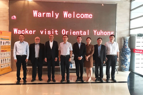 8月28日,德國瓦克化學董事局成員Christian Hartel博士、大中華區總裁Paul Lindblad先生、大中華區副總裁胡文濤先生等專程訪問東方雨虹。東方雨虹總裁向錦明、集團采購供應總監楊曉菲等接待了訪問團。