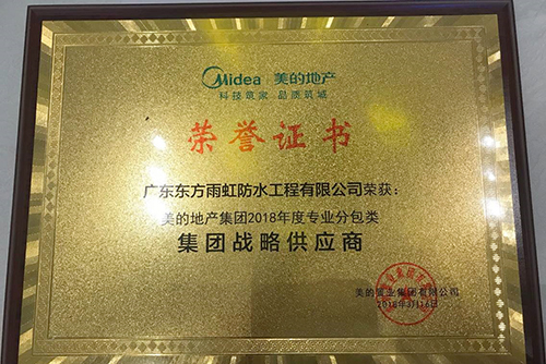 3月16日,由美的地產(chǎn)集團(tuán)舉辦的“守心拓路 敦行致遠(yuǎn)”----2018年供應(yīng)商年會(huì)暨2017年度優(yōu)秀供應(yīng)商表彰大會(huì)在佛山高明美的鷺湖國(guó)際會(huì)議中心召開(kāi)。廣東東方雨虹從眾多知名品牌供應(yīng)商中脫穎而出,榮獲美的地產(chǎn)集團(tuán)專(zhuān)業(yè)分包類(lèi)“集團(tuán)戰(zhàn)略供應(yīng)商”榮譽(yù)稱(chēng)號(hào)。廣東東方雨虹董事長(zhǎng)楊浩成應(yīng)邀出席會(huì)議并代表領(lǐng)獎(jiǎng)。