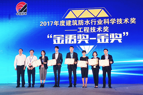 12月7日,全國建筑防水行業(yè)質(zhì)量提升工作大會(huì)暨2017年建筑防水行業(yè)年會(huì)在海口召開。大會(huì)公布中國建筑防水工程“金禹獎(jiǎng)”獲獎(jiǎng)名單,東方雨虹以兩金一銀的成績名列榜單首位。應(yīng)用技術(shù)中心總工助理林海俠女士代表東方雨虹領(lǐng)獎(jiǎng)。