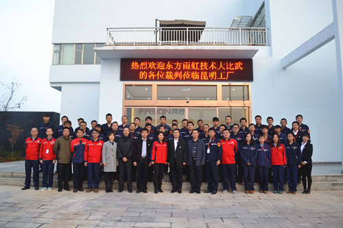 11月14日上午,東方雨虹生產運營中心技術比武暨安全聯動大檢查活動在東方雨虹昆明生產基地啟動,啟動儀式在莊嚴的國歌、悠揚的司歌中拉開序幕。 開幕式上,東方雨虹生產運營中心副總監陸殿富發表講話,要求東方雨虹所有產業化工人要始終具備“匠人、匠心、匠魂”精神,鼓勵大家挑戰極限、歷練自我、實現不可能。昆明生產基地廠長李景絨表示,技術比武是對基地管理水平及勞動技能提升的有效檢驗方式,希望昆明生產基地所有員工認真對待,賽出風格、賽出水平,取得好成績。總裁判長、岳陽生產基地廠長向鋒代表裁判組鄭重宣誓,將以公平、公正、公開、透明的執法精神擔任本次技術比武裁判。 本次活動分南北兩個賽區,南方賽區第一站為昆明生產基地,北賽區第一站為錦州生產基地,啟動儀式在南北兩賽區同時展開。