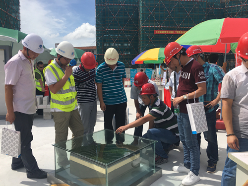 6月29日,廣州市南沙區(qū)2016年建筑施工“安全生產(chǎn)月”現(xiàn)場(chǎng)觀摩會(huì)在南沙區(qū)金茂灣三期工地舉行。廣東東方雨虹作為優(yōu)質(zhì)防水系統(tǒng)服務(wù)商,也受邀參與此次觀摩會(huì),并現(xiàn)場(chǎng)展示了較為核心的防水系統(tǒng)。 本次現(xiàn)場(chǎng)觀摩活動(dòng)以“強(qiáng)化安全發(fā)展觀念 提升全民安全素質(zhì)”為主題,以樹(shù)立安全發(fā)展觀念,提升從業(yè)人員安全素質(zhì),維護(hù)建筑施工安全生產(chǎn)平穩(wěn)局面為目標(biāo),邀請(qǐng)了南沙區(qū)建設(shè)系統(tǒng)、南沙區(qū)質(zhì)監(jiān)系統(tǒng)及各大施工單位相關(guān)領(lǐng)導(dǎo)與人員約四百余人到現(xiàn)場(chǎng)參觀。中國(guó)金茂控股集團(tuán)與中建二局第三建筑工程有限公司皆十分重視防水工程,基于三方一直以來(lái)的良好合作和東方雨虹高質(zhì)量的工程表現(xiàn),特邀廣東東方雨虹在觀摩會(huì)現(xiàn)場(chǎng)進(jìn)行防水系統(tǒng)的展示。