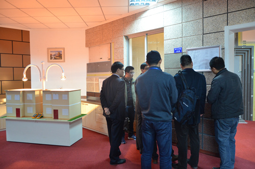 參觀展廳之后,江蘇臥牛山公司副總工程師成時亮博士在雙方技術交流會上向龍湖地產相關領導系統介紹了“國內主流外墻保溫方案的比較優勢”。雙方針對目前蘇南龍湖的在施工項目進行了主材選擇的可行性分析。另外,就砂漿、網格布、錨栓等重要的建筑保溫輔材,以及反射隔熱涂料這類新型保溫產品的原理和應用工程,雙方也進行了交流。