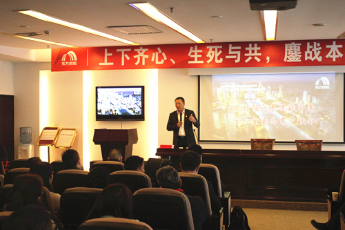 業(yè)務(wù)體系開班集訓(xùn)上除公司高管及內(nèi)訓(xùn)師授課外,還邀請(qǐng)了東方雨虹防水集團(tuán)總裁劉斌先生為業(yè)務(wù)體系授課。他首先分析宏觀經(jīng)濟(jì)形勢(shì)并解析了東方雨虹2016年六大戰(zhàn)略,為上海公司業(yè)務(wù)人員在2016年伊始注入了一針強(qiáng)心劑。