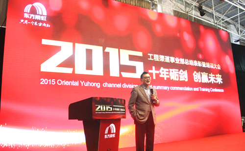 頒獎(jiǎng)結(jié)束后,東方雨虹工程渠道事業(yè)部總經(jīng)理劉紹光做總結(jié)發(fā)言,他希望在今后的工作中,大家都要拿出一拼到底的氣勢(shì),努力到無(wú)能為力、拼搏到感動(dòng)自己,2016年再創(chuàng)佳績(jī)。