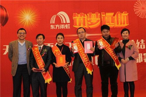 1月20日下午14:00,天津東方雨虹2015年度工作總結(jié)表彰暨2016年度工作部署大會(huì)在天津賽象酒店隆重召開(kāi)。天津東方雨虹全員齊聚一堂,總結(jié)2015年經(jīng)驗(yàn)與得失,部署2016年工作計(jì)劃。東方雨虹董事長(zhǎng)李衛(wèi)國(guó)先生、東方雨虹品牌戰(zhàn)略中心總監(jiān)陳志杰先生、天津市建材業(yè)協(xié)會(huì)防水專(zhuān)家委員會(huì)秘書(shū)長(zhǎng)張秀香女士參會(huì)。 會(huì)議開(kāi)始,天津東方雨虹董事長(zhǎng)兼總經(jīng)理文敬芳女士作《2015年工作總結(jié)暨2016年工作計(jì)劃》的報(bào)告,回顧了天津東方雨虹2015年的工作成果,詳細(xì)部署了2016年工作計(jì)劃及實(shí)施舉措。她強(qiáng)調(diào),在2016年工作中,全體員工要進(jìn)一步領(lǐng)悟和保持歸零心態(tài),全面落實(shí)全心全意為客戶服務(wù)的精神。隨后,天津東方雨虹融創(chuàng)事業(yè)部總經(jīng)理馬紅女士、總工程師彭波先生、總經(jīng)理助理張錦玫女士及各部門(mén)負(fù)責(zé)人分別就部門(mén)工作做了總結(jié)匯報(bào)。