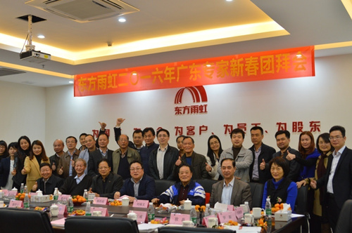 1月9日,廣東東方雨虹在深圳召開2016年新春專家團拜會,來自廣東省防水專家委員會、深圳防水專家委員會、深圳市勘察設計行業協會等20余名專家共聚一堂,共同探討防水行業現狀,為行業的健康發展建言獻策。廣東東方雨虹董事長楊浩成、常務副總經理孫福琴、副總經理盧了君、總工程師周子鵠、市場部經理余佩賢以及深圳東方雨虹常務副總經理歐磊、總工程師吳光文、總經理助理韓麗娟等出席了會議。 會議伊始,廣東東方雨虹董事長楊浩成先生向與會嘉賓介紹了2015年廣東公司取得的成績與公司下一個五年規劃,同時也表示新經濟常態下防水行業存在很多的機遇與挑戰,希望能與在座專家共同促進整個行業健康發展。