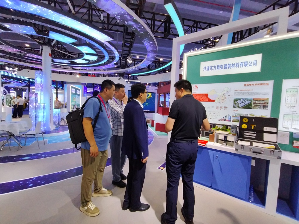 展會上,海南省工業(yè)和信息化廳總工程師黃家林一行蒞臨東方雨虹展區(qū),東方雨虹海南公司負責人陳志超詳細介紹展品核心優(yōu)勢、技術創(chuàng)新以及市場應用等方面。黃家林一行對東方雨虹的發(fā)展成果給與高度肯定,并鼓勵東方雨虹繼續(xù)加大研發(fā)力度,提升產(chǎn)品質量,為建筑建材行業(yè)高質量發(fā)展做出更大貢獻。